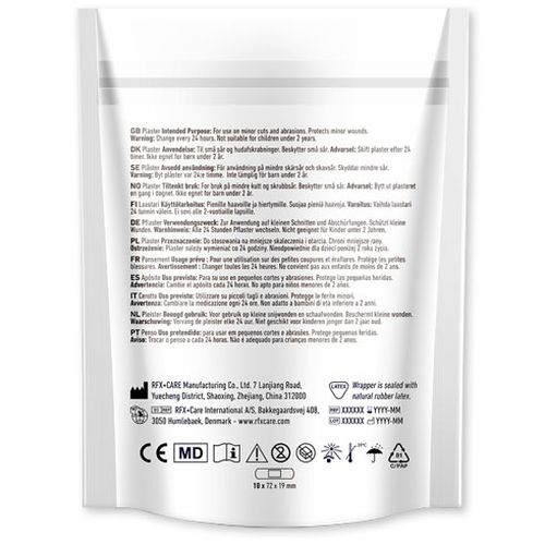 10 pansements livrés dans une pochette en papier (taille 150 x 95 mm). Choisissez entre 4 options de pansement. Universel : imperméable et antisalissure, respirant. Bambou : film de pansement naturel, d’origine naturelle, doux pour la peau, respirant, extra doux. Sensible : facile à enlever, doux pour la peau, respirant, extra doux. Paillettes : imperméable et antisalissure, étincelant. Chaque option d'emballage est fabriquée à partir de matériaux durables, écologiquement et socialement responsables. Impression numérique en couleur disponible sur l'emballage. Nos produits GRAID™ répondent aux exigences strictes de la Medical Device Regulation (MDR) et sont enregistrés auprès de la FDA dans plusieurs pays. Nous privilégions la qualité et à la sécurité, comme en témoignent nos certifications ISO et CE. De plus, notre dévouement à la responsabilité environnementale se reflète dans notre conformité aux normes ISO14001:2015 et ISO9001:2015. Dimensions du pansement : 72 x 19 cm.