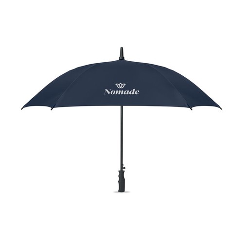 Parapluie tempête de 23'' à ouverture automatique en polyester pongé 190T. Mât et baleines en fibre de verre, poignée en ABS avec finition en caoutchouc.