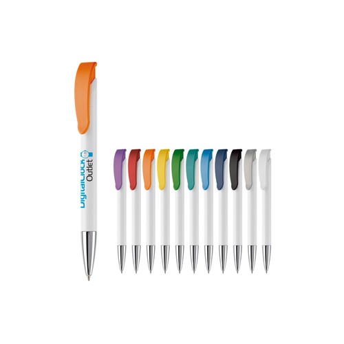Stylo moderne designed by Toppoint avec clip courbé et pointe en métal. Cartouche jumbo synthétique. Un article de promotion avec différentes possibilités. Opaque. Made in Germany.