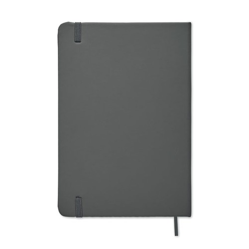 Carnet A5 avec couverture rigide en PU. Reliure dos collé. 192 pages en papier recyclé ordinaire (96 feuilles). Bande élastique de fermeture et ruban marque- page assortis. FSC®- certified | FSC MIX CREDIT, P7.1, FSC- C213206