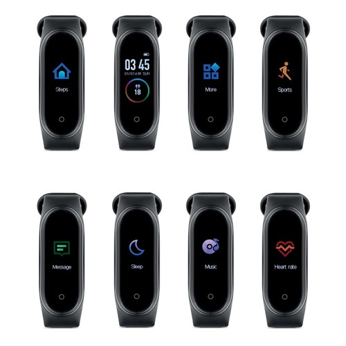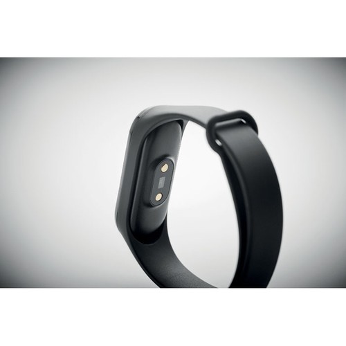 Montre santé sans fil 5.0 en ABS avec bracelet en silicone. Écran LCD tactile de 0,96 pouce. Batterie rechargeable Li- Pol 90 mAh. Nécessite une application gratuite (HryFine disponible sur iOS et Android).