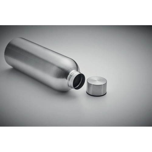 Bouteille à simple paroi en acier inoxydable recyclé (90 % d'acier inoxydable recyclé et 10 % d'acier inoxydable). Anti fuite. Capacité de 750 ml. Comme il s'agit d'un flacon à paroi simple, un transfert de chaleur peut encore se produire.
