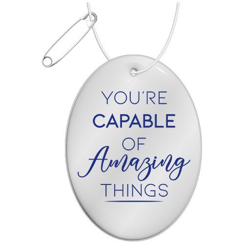 Fixez cette attache réfléchissante aux vêtements, sacs ou autres articles d'extérieur pour augmenter la visibilité dans l'obscurité. En utilisant ces accroche- sacs certifiés, vous faites de la sécurité routière une caractéristique de votre marque. Les accroche- sacs sont fournis avec une ficelle blanche et une aiguille de sécurité pour un montage facile. Disponibles en différentes formes et tailles, et en couleur blanche ou jaune. Ils sont dotés d'un film réfléchissant souple RFX™ florescent fabriqué en PVC sans phtalates ou en TPU, une option plus durable. Les matériaux ont été testés conformément à la liste candidate REACH SVHC (substances extrêmement préoccupantes) et sont exempts de phtalates. Les cintres sont testés et approuvés par la CE conformément à la norme EN 13356 : 2001 Type 1. Fabriqué en Europe.