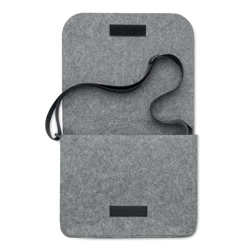 Sac messager ou sac d'ordinateur portable en feutre RPET avec fermeture auto- agrippante. Bandoulière en polyester. Convient à un ordinateur portable de 15''.