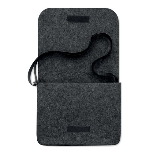 Sac messager ou sac d'ordinateur portable en feutre RPET avec fermeture auto- agrippante. Bandoulière en polyester. Convient à un ordinateur portable de 15''.