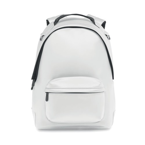 Sac à dos pour ordinateur portable 15 pouces en PU souple avec dos rembourré et base renforcée. Poche frontale zippée. La doublure est en 210D RPET.