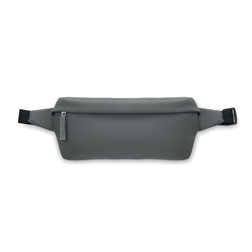 Sac banane en polyester 600D RPET et revêtement PU, doublure en polyester 210D RPET et poche frontale zippée.