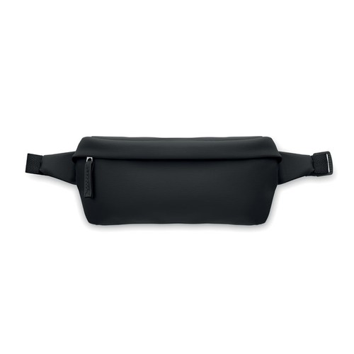 Sac banane en polyester 600D RPET et revêtement PU, doublure en polyester 210D RPET et poche frontale zippée.