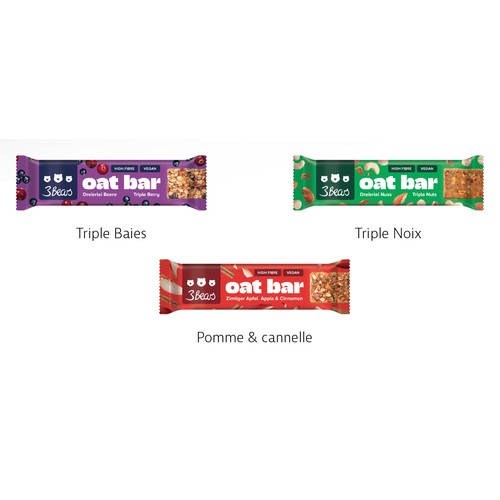 Les délicieuses barres 3Bears sont le snack idéal à tout moment – au bureau, à la crèche ou à la salle de sport, elles se glissent parfaitement dans n’importe quel sac. Disponibles en trois savoureuses variétés qui donnent simplement envie d’en reprendre. Toutes les barres sont véganes, riches en fi bres, sans sucre raffi né ni huile de palme, pour un plaisir responsable et agréable. Conditionnées dans un étui en carton certifi é FSC® personnalisable.