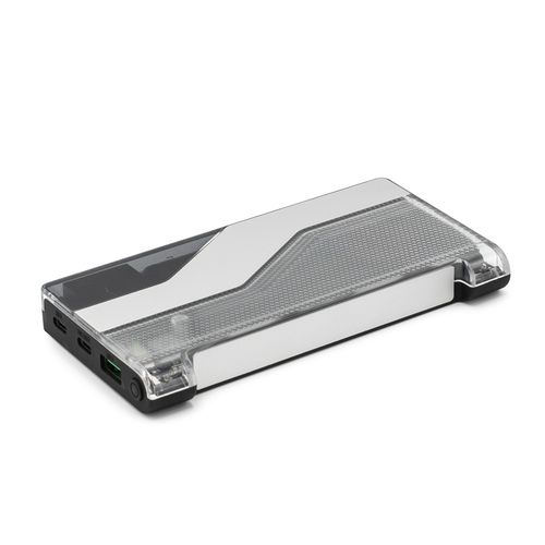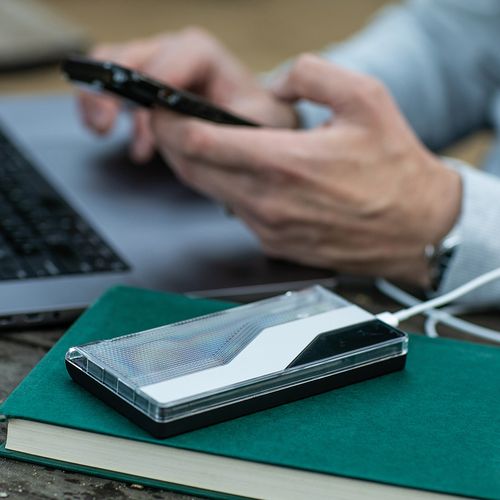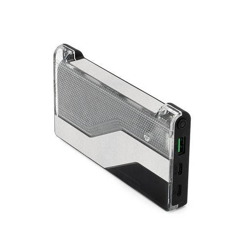 Batterie portable Voltix au design futuriste et élégant, en ABS recyclé. Équipée de 2 ports USB- A et 1 port USB- C, elle permet une charge rapide (jusqu’à 18W) et peut recharger un smartphone 4 à 5 fois avec une seule charge. Écran LCD intégré pour suivre le niveau d’énergie. Livrée dans une boîte kraft individuelle "seconde vie". Entrez dans le monde de la commodité.