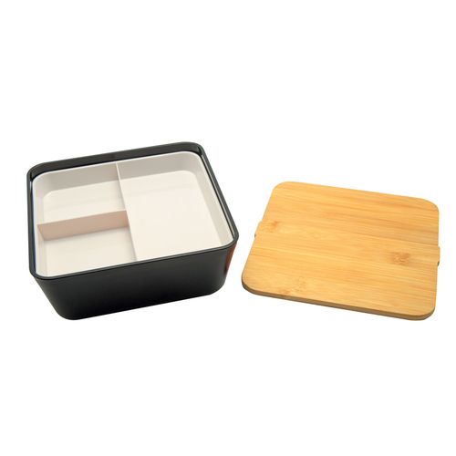 Boîte déjeuner (lunch box) simple compartiment. Contenant en polypropylène et séparateur en polyéthylène avec joints en silicone et système de vide d'air pour une étanchéité parfaite. Plateau compartimenté en polypropylène. Couvercle en bambou. Boîte repas compatible (sans le couvercle) avec lave- vaisselle (50° max), congélateur et micro- ondes (100° et 2 minutes max). Contenance : 1,75 L.