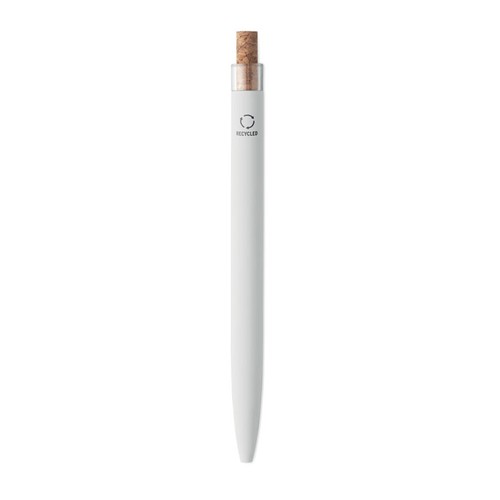 Stylo bille en aluminium recyclé avec bouton poussoir en liège et clip en métal. Encre bleue.