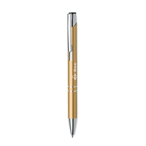 Stylo à bille à bouton poussoir en aluminium recyclé. Encre bleue.