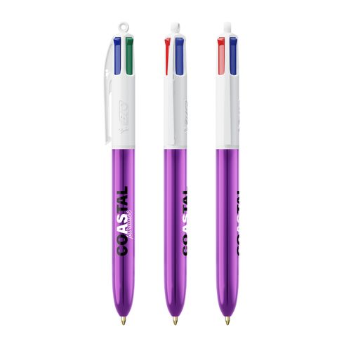 Le célèbre BIC® 4 Couleurs®, icône de la marque, présenté dans des couleurs métallisées brillantes. Disponible dans 4 couleurs d'encre standard : bleu, noir, rouge et vert. Notre emblématique BIC® 4 Couleurs® devient plus durable, avec désormais 13 % de plastique en moins dans la partie supérieure !