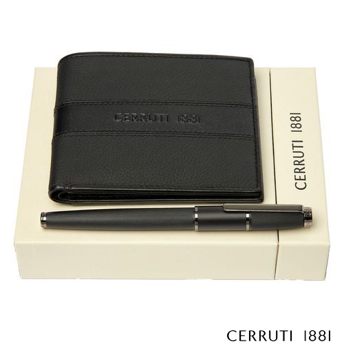 Set Portefeuille-cartes Delano Black + Stylo roller Brick Black