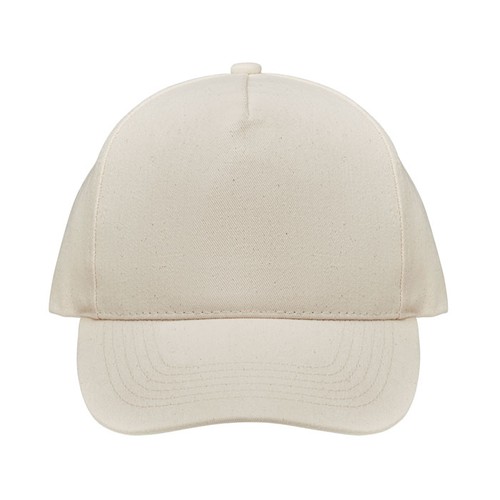 Casquette de baseball à 5 pans en coton organique brossé 250 gr/m² avec fermeture à boucle arrière réglable en métal.