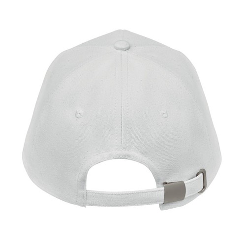 Casquette de baseball à 5 pans en coton organique brossé 250 gr/m² avec fermeture à boucle arrière réglable en métal.