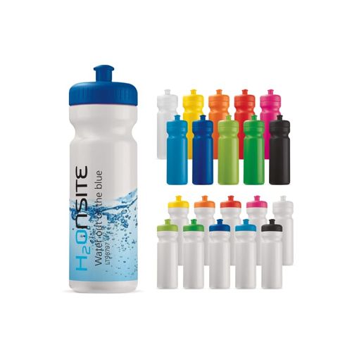Bidon de sport 750ml fabriqué en Allemagne . Disponible dans de nombreux coloris. Possibilité de mixer les couleurs 'Mix and Match' . Muni d'un bouchon ergonomique qui permet de boire encore plus facilement. 100% étanche sans BPA , réponds aux normes alimentaires. Marquage tout autour en UV high Gloss (sérigraphie rotative) ou Digital Print 360° . Marquage nominatif possible. Tous nos produits sont testés et certifiés, et répondent aux normes sociales.Matières :LDPE, PP