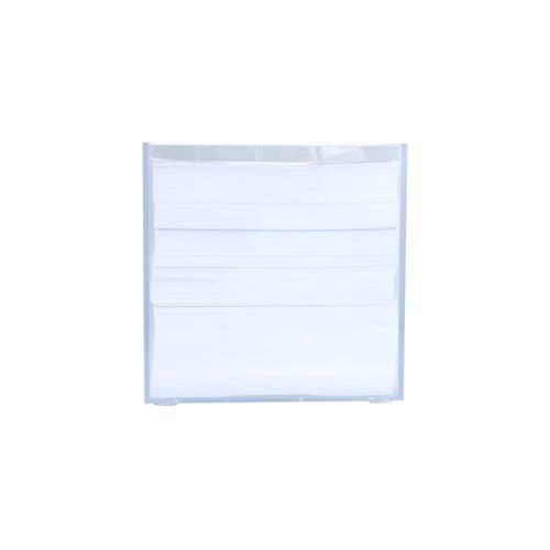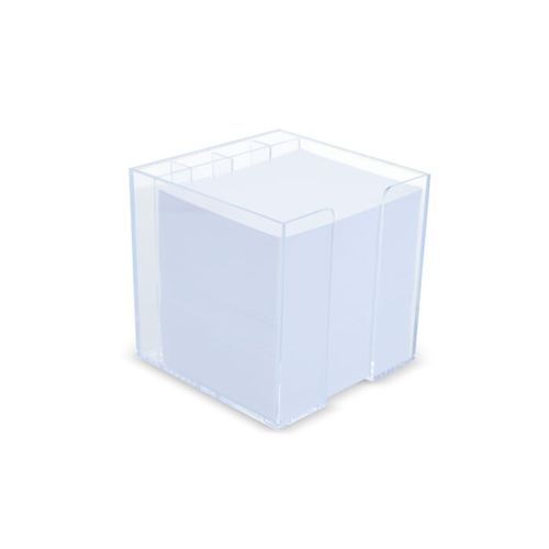 Bloc- notes en papier blanc dans une boîte cubique avec quatre compartiments transparents pour les articles de bureau. Idéal pour une utilisation à la maison ou au bureau. Environ 800 feuilles. Chaque cube est emballé sous film plastique.Matières :Papier FSC