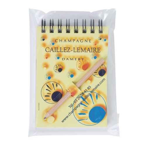 Dimensions :BLOC- NOTES 7,4 x 10,5 cm - CRAYON diam.0,5 x 8,7 cm