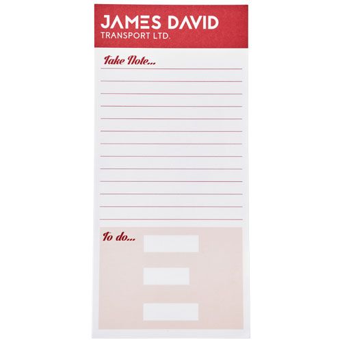 Bloc- notes Desk- Mate® 1/3 A4 blanc avec des feuilles de papier vierge de 80 g/m². Marquage possible sur chaque feuille. Trois tailles disponibles (25/50/100 feuilles).