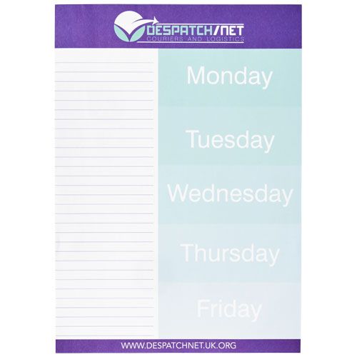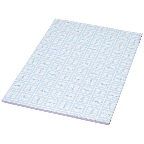 Bloc- notes Desk- Mate® A4 blanc avec des feuilles de papier vierge de 80 g/m². Marquage possible sur chaque feuille. 3 tailles disponibles (25/50/100 feuilles).