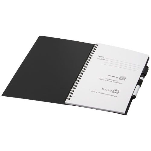 Carnet durable axé sur la réduction de l'utilisation du papier pour sauver l'environnement. Après avoir pris des notes, dessiné ou fait un brainstorming, les pages peuvent être effacées avec la gomme présente sur le marqueur pour réutiliser les pages. Elles peuvent également être effacées avec un tissu ordinaire (non inclus). Comprend 20 feuilles (40 pages) à moitié pointillées et à moitié vierges, et un marqueur d'écriture noir.