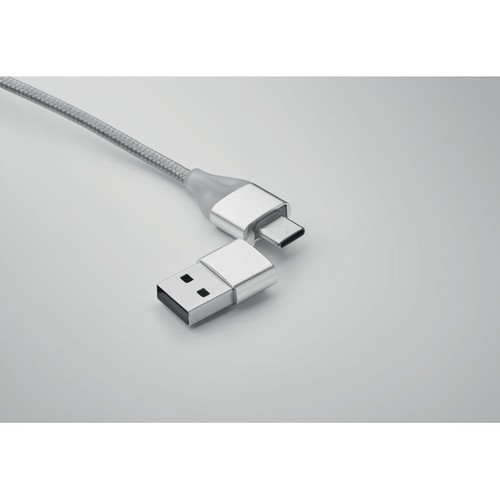 Porte- clés avec câble de chargement avec entrée : 2- en-1 type- C & type- A et micro- B (adaptateur 2 en 1 ) et sortie type C.