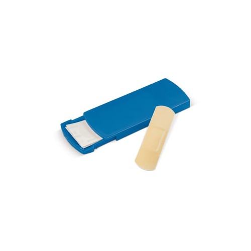 Boîte de pansements de différentes couleurs transparentes. 5 pansements inclus. Boite pratique à emmener ou mettre dans son sac. Possibilité de marquage en digital (quadri), en sérigraphie ou en tampographie (4 couleurs pantones). Avec le marquage digital, le prix reste le même peu importe le nombre de couleurs de marquage. Usine auditée BSCI. Tous nos produits sont testés et certifiés, et répondent aux normes sociales.