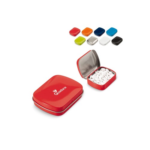 Jolie boîte carrée en métal avec différentes couleurs contenant 23 gr de menthe Hollandaise. Contient du sucre. Fabriquée en Europe. Marquage sur le dessus de la boîte en digital (quadri). Avec le marquage en digital, le prix reste le même peu importe le nombre de couleurs de marquage. Tous nos produits sont testés et certifiés, et répondent aux normes sociales.