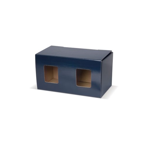 Boite cadeau bleue avec fenêtre pour 2 mugs.