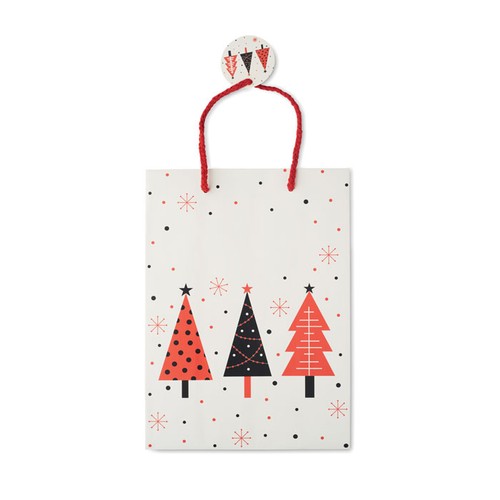 Sac cadeau de Noël en papier de taille moyenne (30% recyclé) avec étiquette incluse. 150 gr/m². FSC®- certified | FSC MIX, P5.3, FSC- C213206