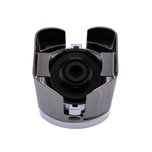 - Enfoncez légèrement le bouchon vers le bas et rabattez les bras de serrage latéraux sur la bouteille. Les éléments de serrage doivent alors se trouver sur le bord épais de la bouteille.
