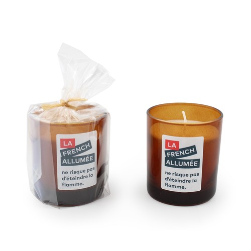 ♠ Bougie en verre ambré avec bouchon - parfum Forêt nordique
