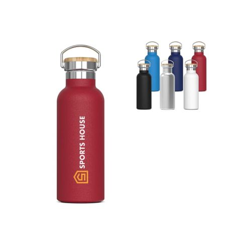 Gourde isotherme sous vide à double paroi. Le flacon 100% étanche est emballé dans un coffret cadeau. La bouteille maintient la boisson à l'intérieur à la bonne température plus longtemps, grâce au vide entre les parois. Les boissons resteront chaudes jusqu'à 12 heures et/ou froides jusqu'à 24 heures. La bouteille contient un revêtement en poudre pour une surface plus premium.Matières :Acier inoxydable, Bambou, PP