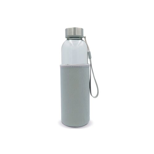 Bouteille à eau en verre avec fourreau. Comprend une petite sangle au niveau du bouchon pour pouvoir transporter la bouteille facilement. Convient aux boissons froides, gazeuses et non gazeuses.Matières :Verre, PP