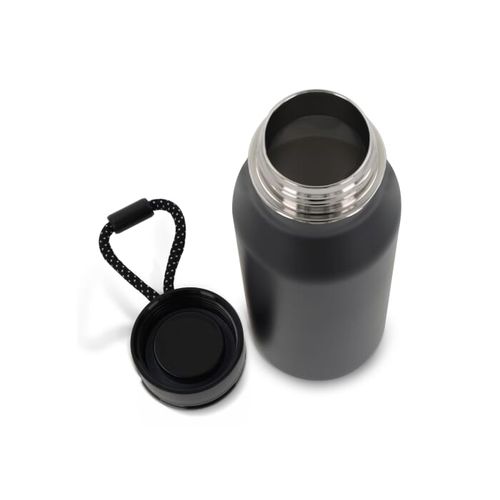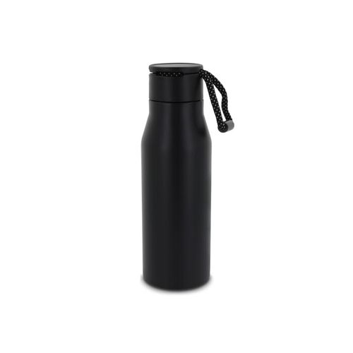Bouteille isotherme double paroi avec une dragonne pour transporter plus facilement. L'extérieur a un design robuste. D'une contenance de 600ml elle est livrée dans un coffret cadeau.Matières :Acier inoxydable, PP