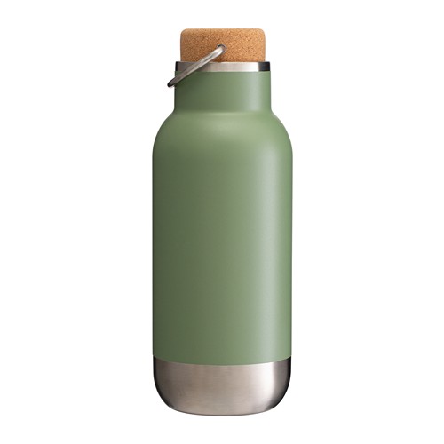 Le délicat revêtement en poudre confère à la bouteille un toucher exceptionnellement agréable. Le couvercle en liège, complété par une poignée pratique, confère à la bouteille une apparence harmonieuse. La poignée permet de transporter confortablement la gourde ou de l'attacher à un sac, ce qui la rend idéale pour les déplacements. Le joint en silicone et le bouchon tournant garantissent la bonne fermeture de la bouteille thermos, offrant ainsi une protection contre les fuites. Elle convient donc aux boissons gazeuses. L'article peut être nettoyé au lave- vaisselle. Attention : le couvercle en liège ne passe pas au lave- vaisselle !