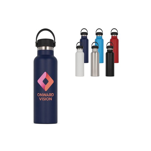 Gourde isotherme sous vide à double paroi. Le flacon 100% étanche est emballé dans un coffret cadeau. La bouteille maintient la boisson à l'intérieur à la bonne température plus longtemps, grâce au vide entre les parois. Les boissons resteront chaudes jusqu'à 12 heures et/ou froides jusqu'à 24 heures. La bouteille contient un revêtement en poudre pour une surface plus premium.