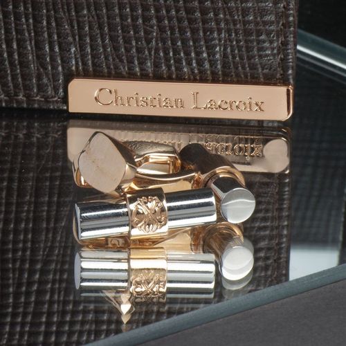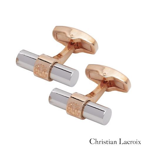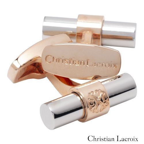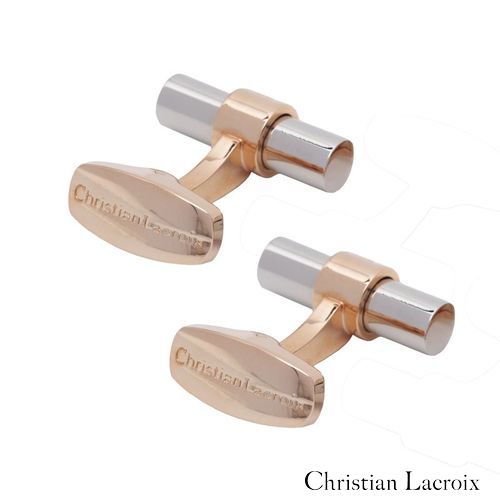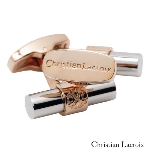 Avec leur forme cylindrique chromée brillante, les boutons de manchette "More" sont classiques et élégants. Les logos CXL et Christian Lacroix sont délicatement estampés sur la structure en couleur or rose brillant.