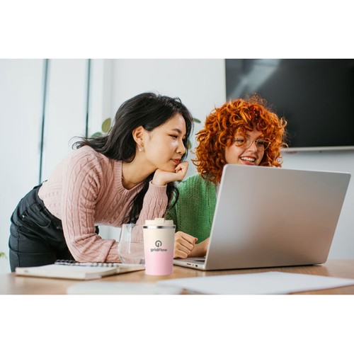 Gobelet à double paroi en acier inoxydable recyclé (90 % d'acier inoxydable recyclé et 10 % d'acier inoxydable) avec couvercle en PP. Capacité : 350 ml. Anti fuite.