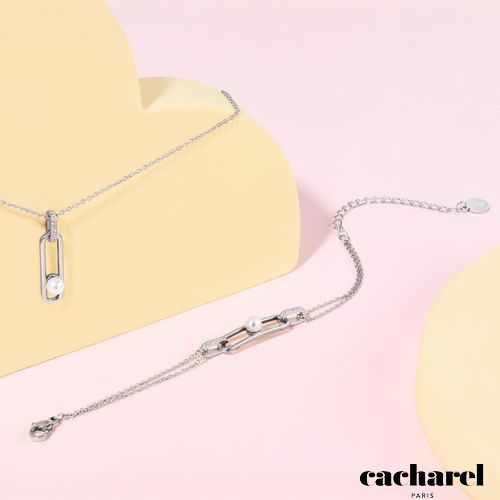Le bracelet "Apolline" en argent allie élégance et féminité intemporelle. La délicatesse de la perle de verre blanc lustré, les détails en cristal incrusté sur les deux maillons et le pendentif de forme ovale ajoutent une touche de luxe. Parfaitement polyvalent, ce bracelet s'associe sans effort à toutes les garde- robes. Le bracelet "Apolline" est composé d'acier inoxydable, de cristal et de perle de verre blanc.