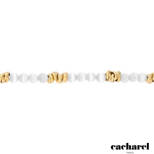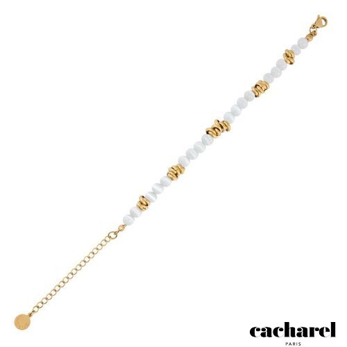 The Imogene bracelet mixes a row of colorful beads with golden ones, creating a relaxed hobo touch while keeping a refined, easygoing look. Signed with the Cacharel plate at the closing, it adds a gentle hint of color and style to any outfit. Available in off- white, navy or ocre.