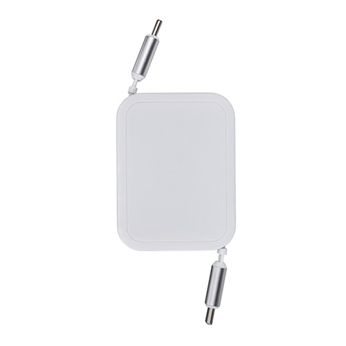 Grâce à son système d’enroulement intégré, il reste toujours bien rangé et prêt à l’emploi. Il suffit de libérer les deux connecteurs du boîtier, puis de tirer uniformément jusqu’à la longueur souhaitée. Le câble se verrouille automatiquement sur l’un des quatre niveaux disponibles, jusqu’à 90 cm. Après utilisation, une simple traction permet au câble de se rétracter doucement dans sa capsule.