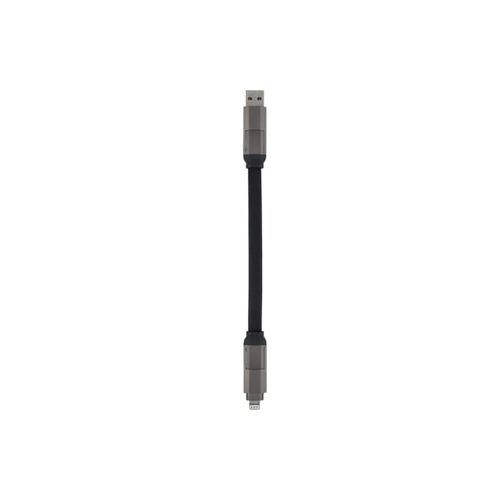 Ce câble multifonction est le compagnon de voyage par excellence, avec des entrées USB- A et USB- C et des sorties USB- C et Lightning pour une compatibilité infinie. Il prend en charge les fonctions Power Delivery (PD) et Quick Charge (QC). Le matériau tressé en nylon durable garantit la longévité, tandis que le fermoir magnétique permet de l'organiser proprement. Parfait pour une utilisation en déplacement.Matières :Nylon