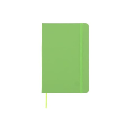 Carnet de notes en PU au design classique, avec sangle élastique et ruban de couleur assortie. 96 feuilles de papier blanc quadrillé.