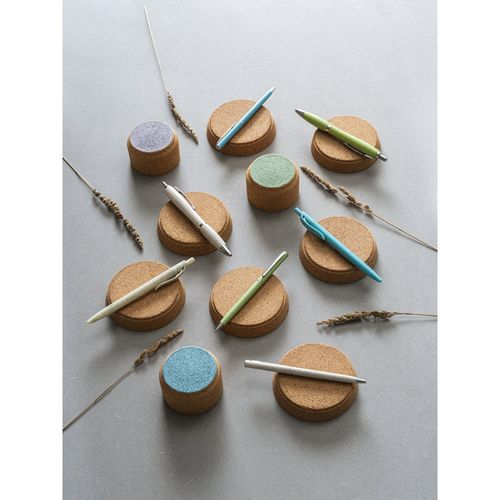 Stylo à bille en fibre de paille de blé et ABS avec clip, disponible en plusieurs couleurs. Le produit étant fabriqué à partir de matériaux naturels, la couleur du produit ainsi que le résultat de l'impression peuvent varier d'un produit à l'autre. ø10 x 141 mm