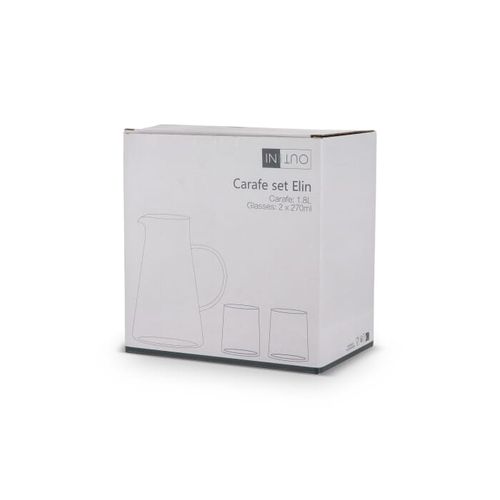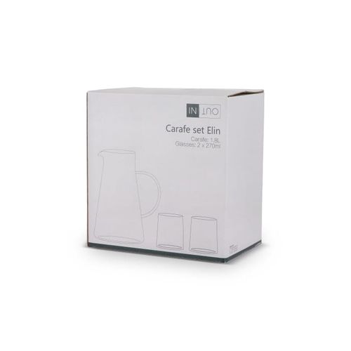 Le set de carafe InSideOut Elin se compose de 2 verres et d'une carafe avec poignée. L'ensemble est fabriqué en borosilicate, un verre résistant à la chaleur et très solide. Le design est simple mais élégant, sans fioritures ni bords supplémentaires, et donc parfait pour être combiné avec d'autres articles de table ou de la vaisselle. Le pichet a une capacité de 1,2 litre et les verres sont d'une contenance de 270 ml et passent au micro- ondes. Le pichet et les verres peuvent être pourvus d'une gravure.Matières :Verre borosilicate