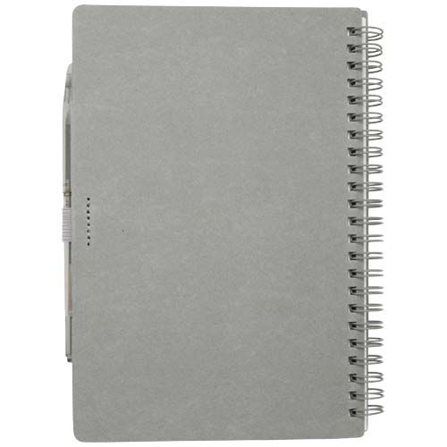 Carnet A5 à couverture souple en papier de pierre réutilisable avec set de stylos. Le carnet est pourvu d’une couverture en carton, des coins arrondis et de 32 feuilles de papier ligné de 120 g/m². Le papier de pierre n'utilise aucun arbre et le processus de production consomme moins d’énergie que celui du papier recyclé ou de nouvelle pâte à papier. Au dos, une pochette permet de ranger un chiffon d’essuyage noir (inclus). Stylo effaçable en plastique recyclé au corps transparent, une gomme blanche sur le dessus et un grip de couleur unie. Couleur de l'encre : Noire. Longueur d'écriture : 250 mètres. Taille de la plume : 0,7 mm.