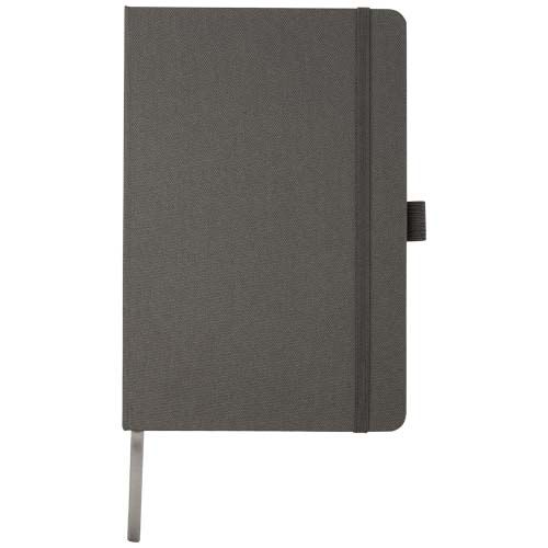 Carnet A5 avec couverture en tissu RPET. Comprend 80 feuilles en papier recyclé de 70 g/m², une boucle pour stylo et un marque- page ruban.